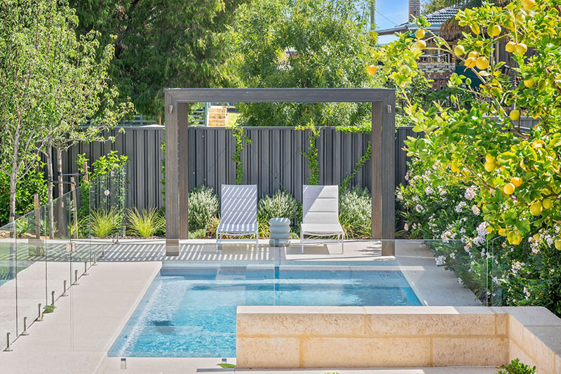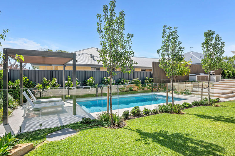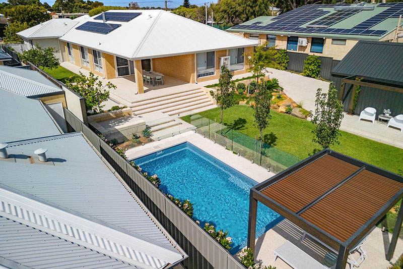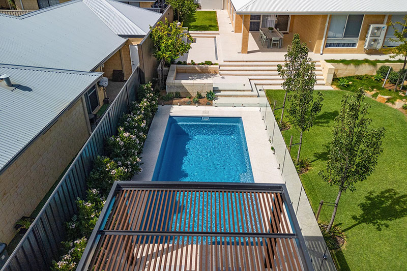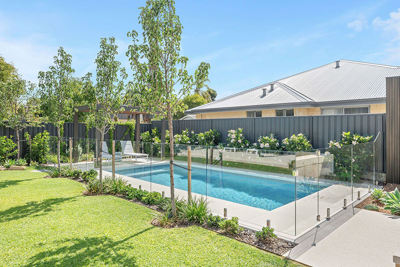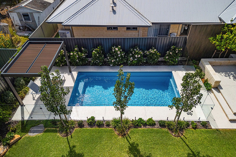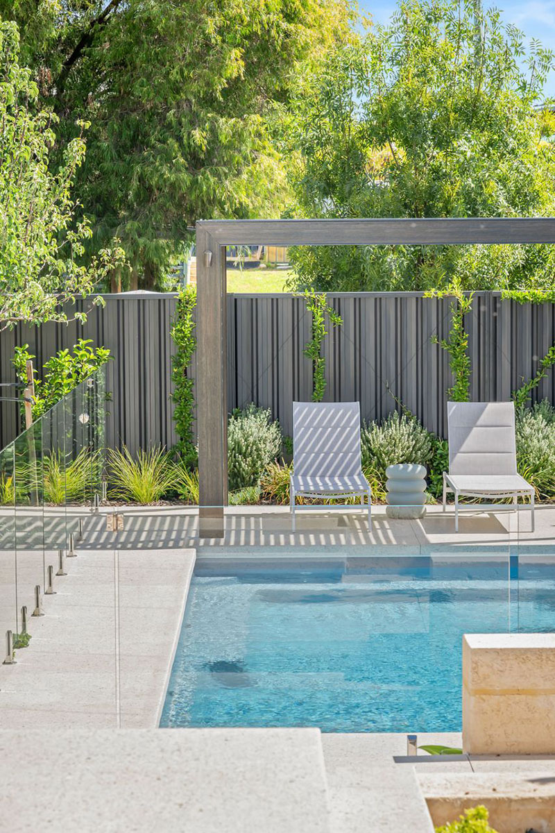 This 7.5m x 3.8m Billabong pool in Hampton Grey Shimmer brings a sleek, coastal elegance to this Safety Bay backyard. Its spacious layout offers plenty of room for swimming, relaxing, and entertaining, making it ideal for families and outdoor gatherings. The Hampton Grey Shimmer finish gives the water a cool, silvery-blue hue that beautifully reflects the natural light, complementing the laid-back coastal vibe. A stylish and functional addition, this pool is perfect for modern living by the bay.