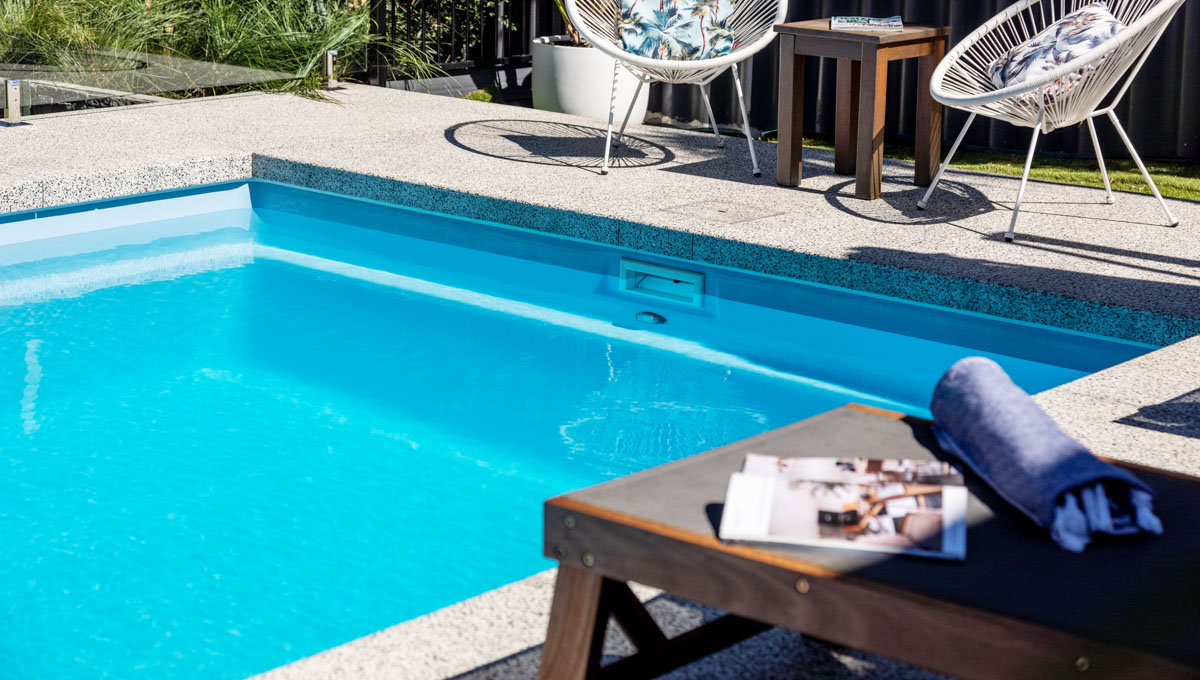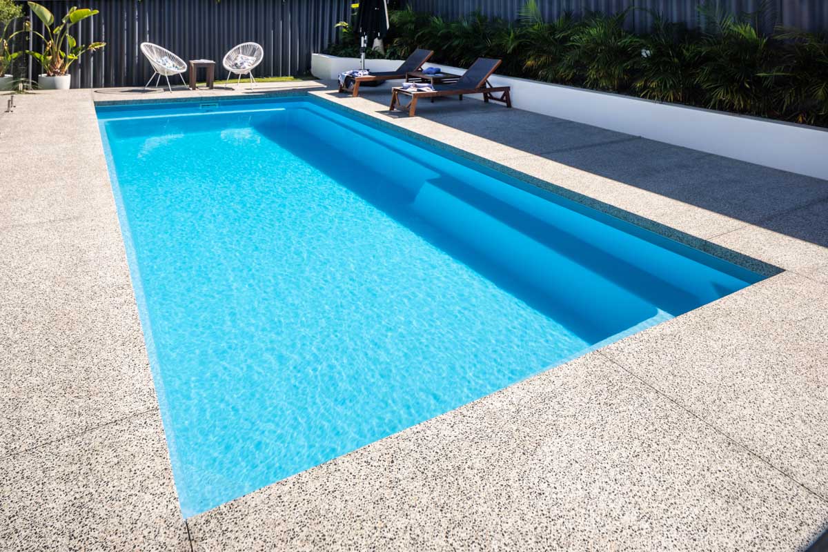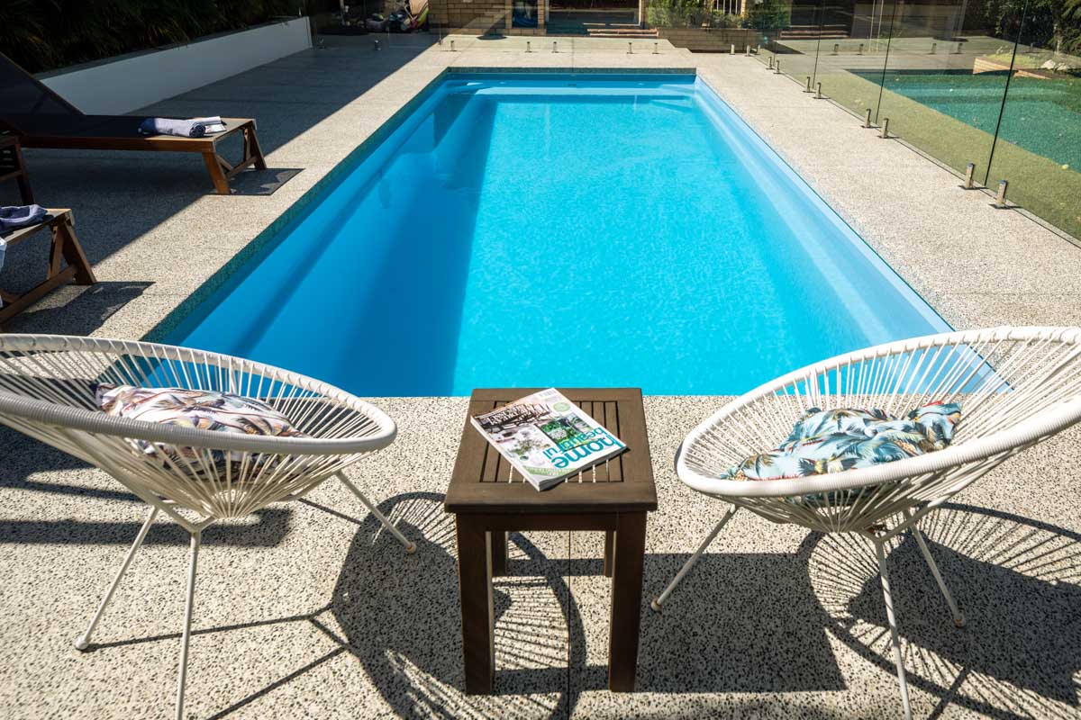 This pool installation masterfully employs a delightful contrast of colours to significantly enhance the aesthetic appeal of the backyard and Billabong pool. By thoughtfully utilising the available open space, swimmers are given the luxury to either unwind on one of the comfortable outdoor chairs or engage in a refreshing swim. The Sky Blue Shimmer pool colour perfectly complements the lighter shade of paver selected by the homeowners, creating a visually soothing oasis that invites relaxation. Our meticulously designed 10.5m x 3.8m pool configuration is ideally suited for large backyards, seamlessly integrating with spaces that allow the pool’s beauty to truly stand out. This design not only maximises the functionality of the outdoor area but also elevates the overall home aesthetic, making it a perfect retreat for both family and friends to enjoy.
