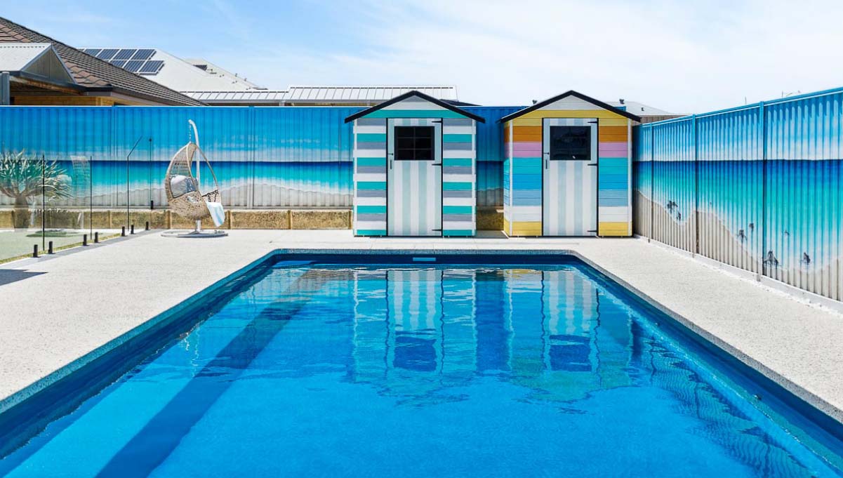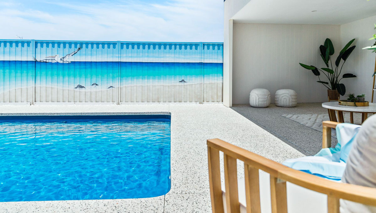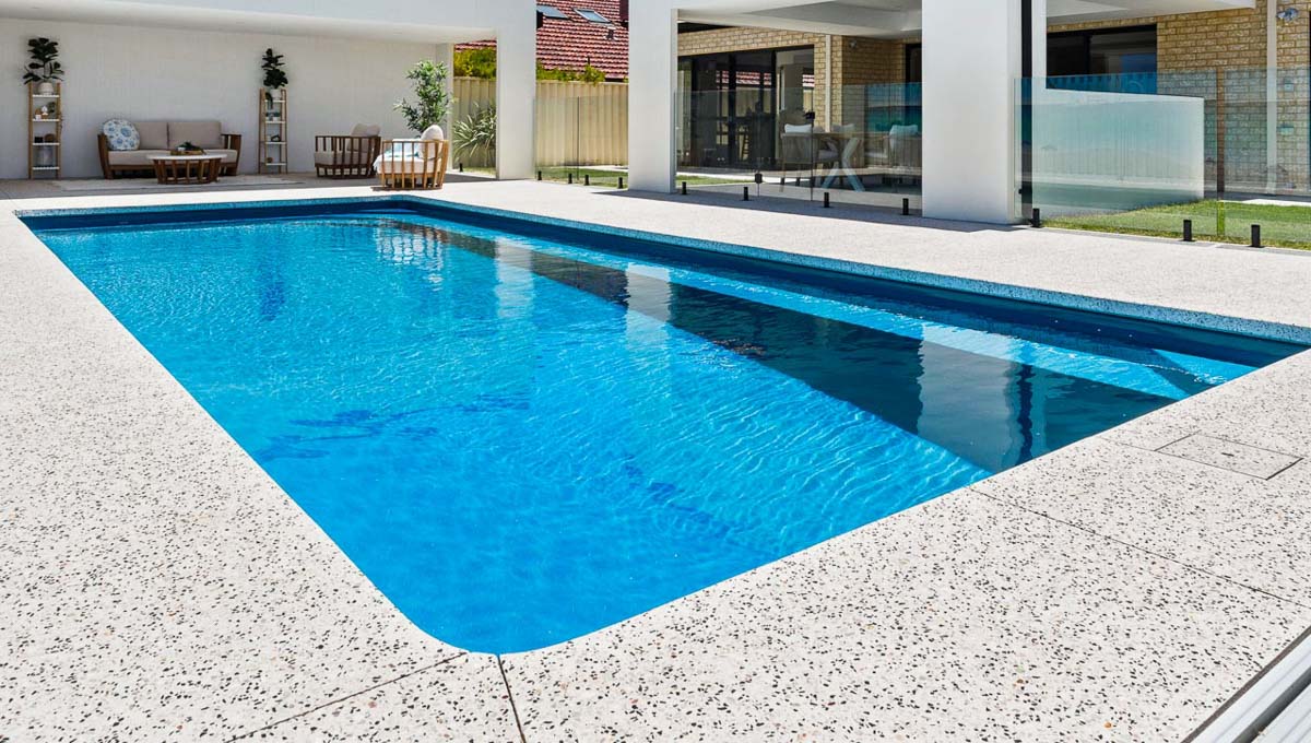 Introducing the Brampton 10.1m x 4.4m pool in Royal Ocean Shimmer, showcasing striking geometric features that beautifully complement both modern and timeless landscapes.