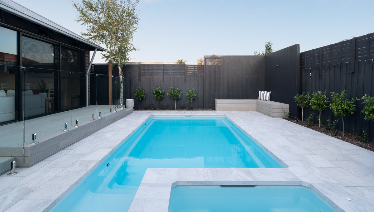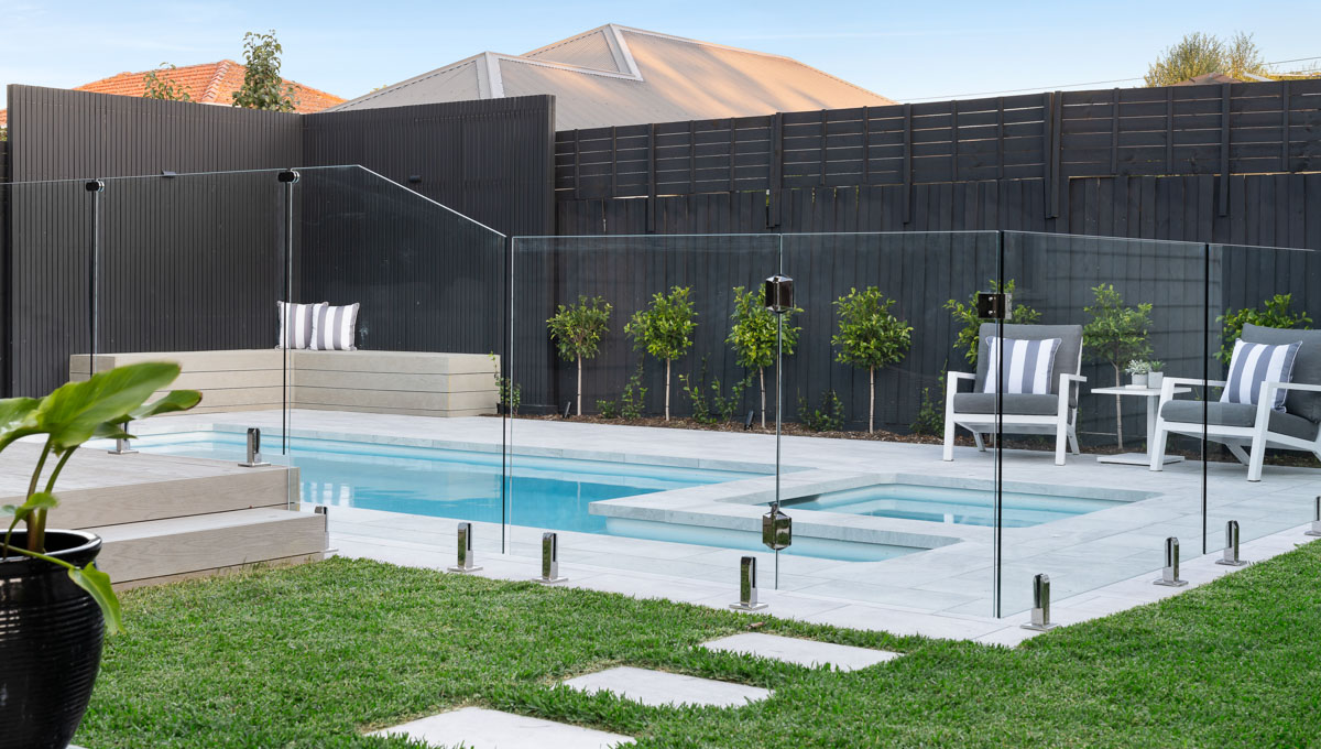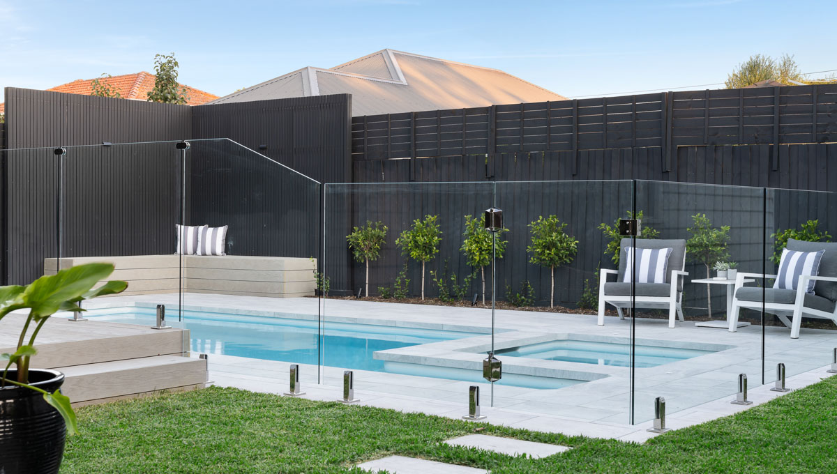 View our photo gallery of our Brooklyn Slimline 6.2m x 3.5m in Silver Shimmer, recently installed at Doubleview for another happy family.