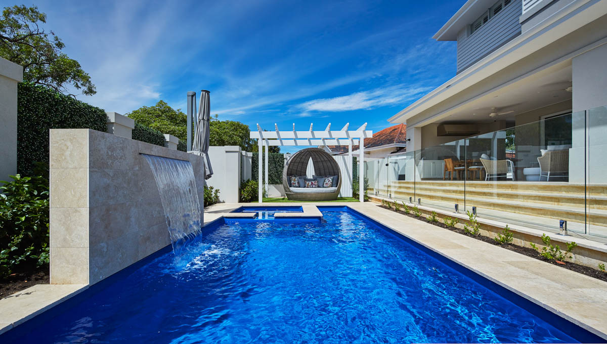 View our photo gallery of our Brooklyn Slimline 7.2m x 3.5m in Ocean Shimmer, recently installed at Floreat for another happy family.