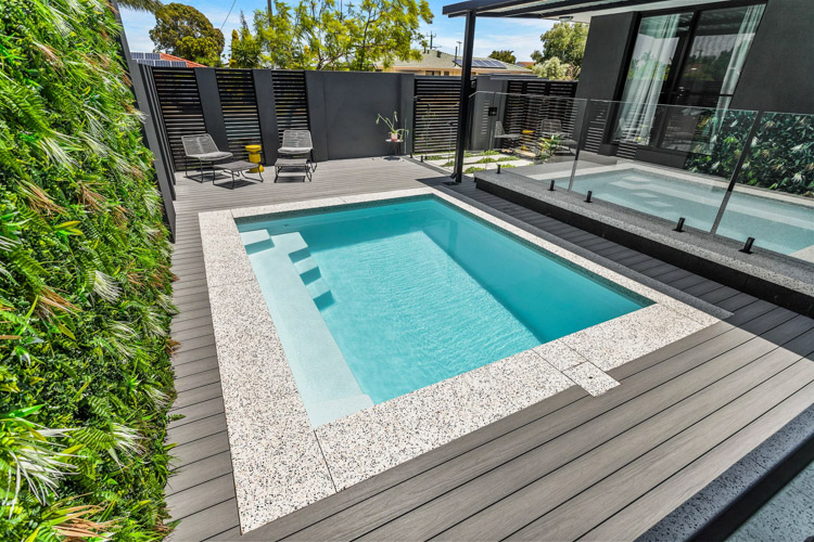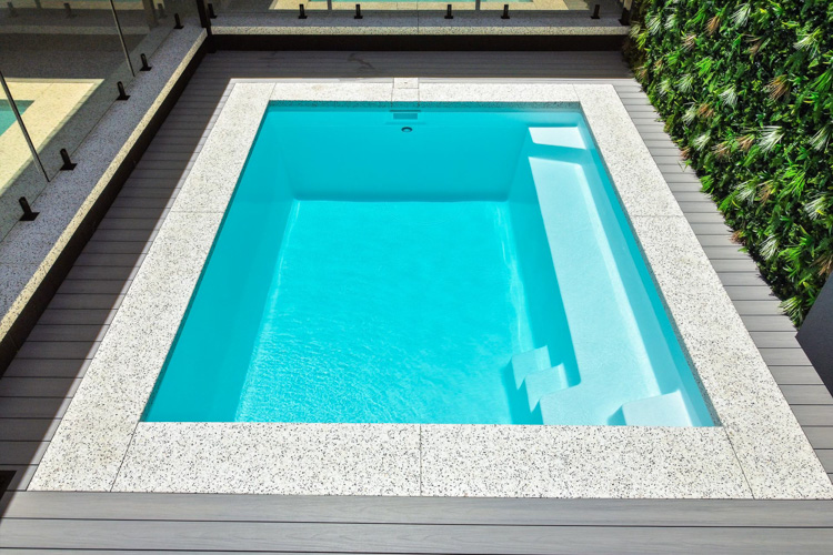 View our newest installation in Padbury! We’ve installed one of our Hamilton Slimline pools in a 4.5m x 3m. This pool is sporting our icy Polo White Sparkle colour!