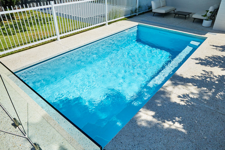 Check out our installation of our Hamilton Slimline 6.5m x 3m in our Silver Pearl Sparkle colour. Our extensive pool gallery gets all the angles!