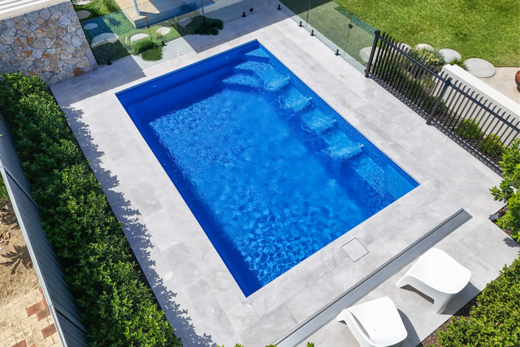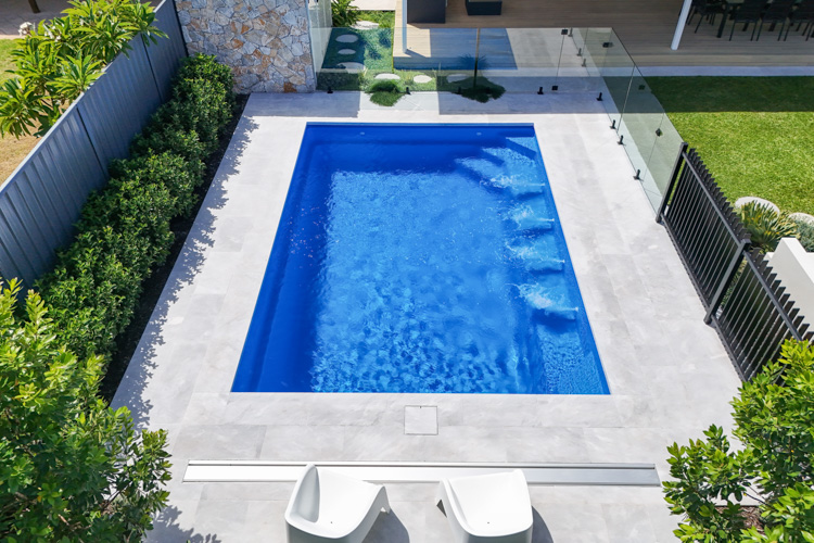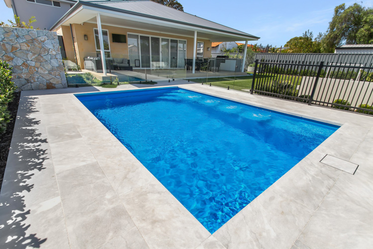 Take a look at this stunning Hampton Grande, sized at 6m x 4.2m and finished in our eye-catching Crystal Blue Sparkle. Installed in beautiful Safety Bay, this pool adds a refreshing coastal vibe and the perfect space to relax or entertain.