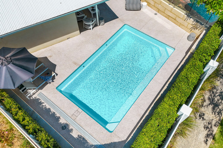 Take a look at this stunning Hampton Grande, sized at 7m x 4.2m and finished in our eye-catching Polo White Sparkle. Installed in beautiful Wembley Downs, this pool adds a refreshing coastal vibe and the perfect space to relax or entertain.