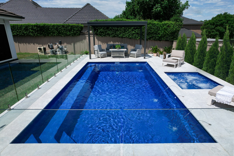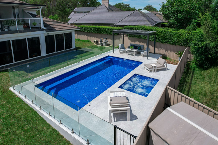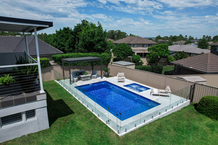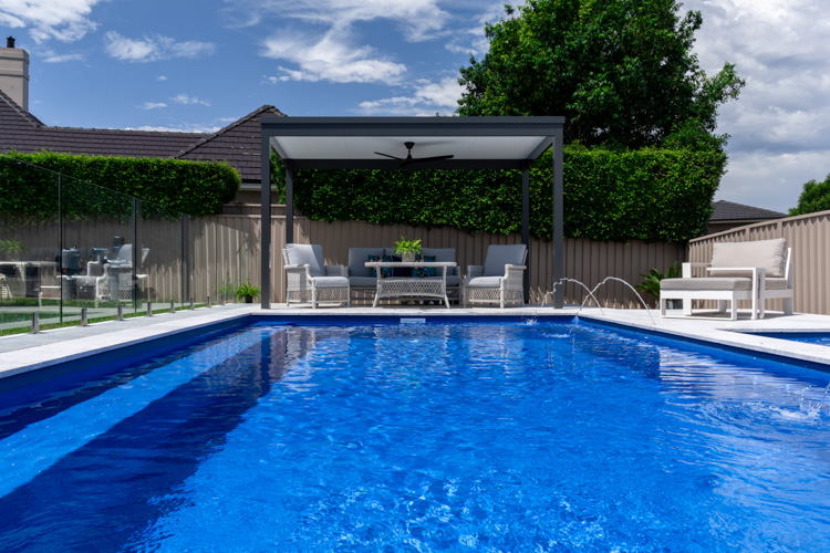 Take a look at this stunning Hampton Grande, sized at 9m x 4.2m and finished in our eye-catching Ocean Reef Blue Sparkle. This pool adds a refreshing coastal vibe and the perfect space to relax or entertain.