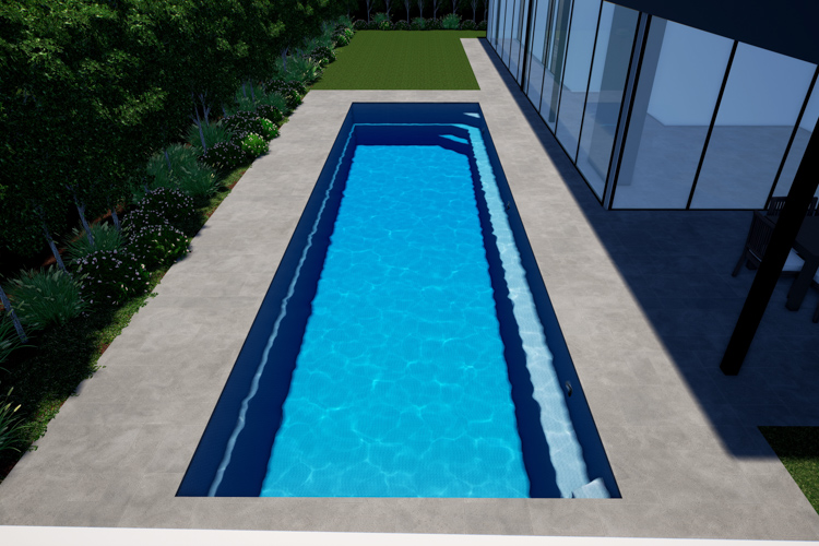 The Hampton Lap Pool Series is the latest addition to The Fibreglass Pool Company range. The Hampton Lap Pool has been designed for all ages to enjoy a healthy lifestyle. Boasting clean lines and available in both 10m and 12m lengths you have the luxury of exercising in the privacy of your own home at any time. Coupled with its generous width, there is plenty of space for water recreation too. It features a full-length entry step that can double as an open spa with the addition of jets or seating area for relaxation. Dual entry/exit points allow versatility with positioning. This design embodies a contemporary feel and is proudly one of Australia’s largest fibreglass pools.