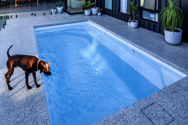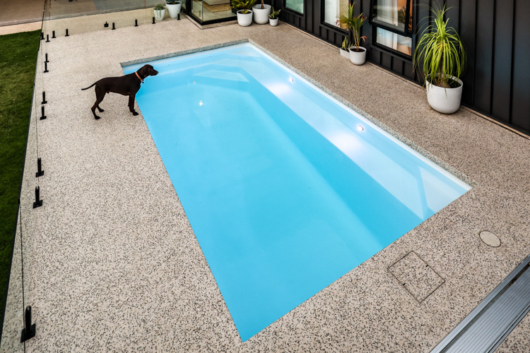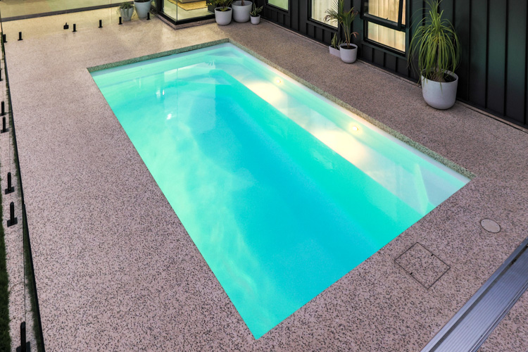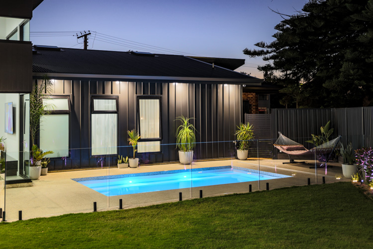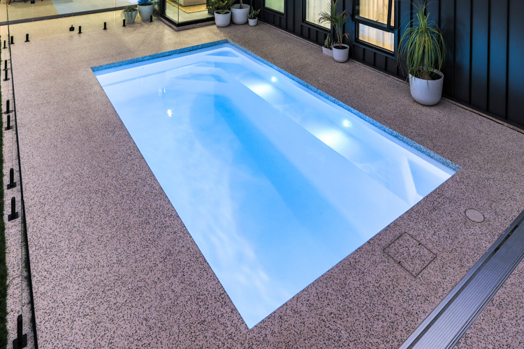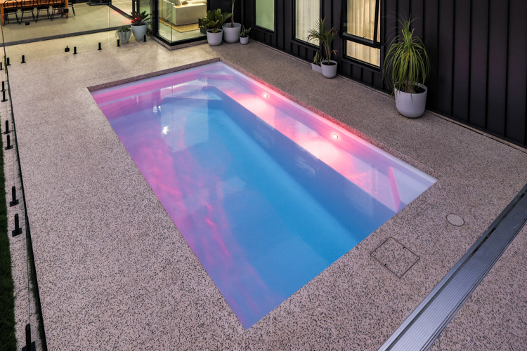 Check out our Heron 7m x 2.6m pool in our Polo White Sparkle colour! These homeowners have opted for glass fencing and LED pool lights to make the pool really stand out at night!