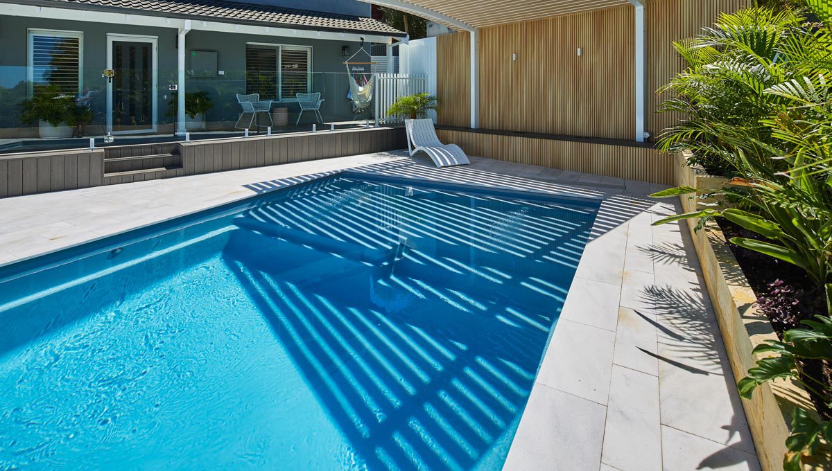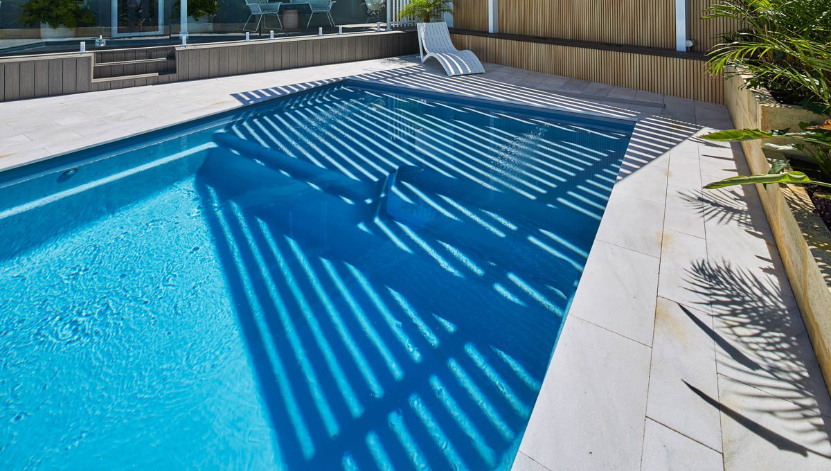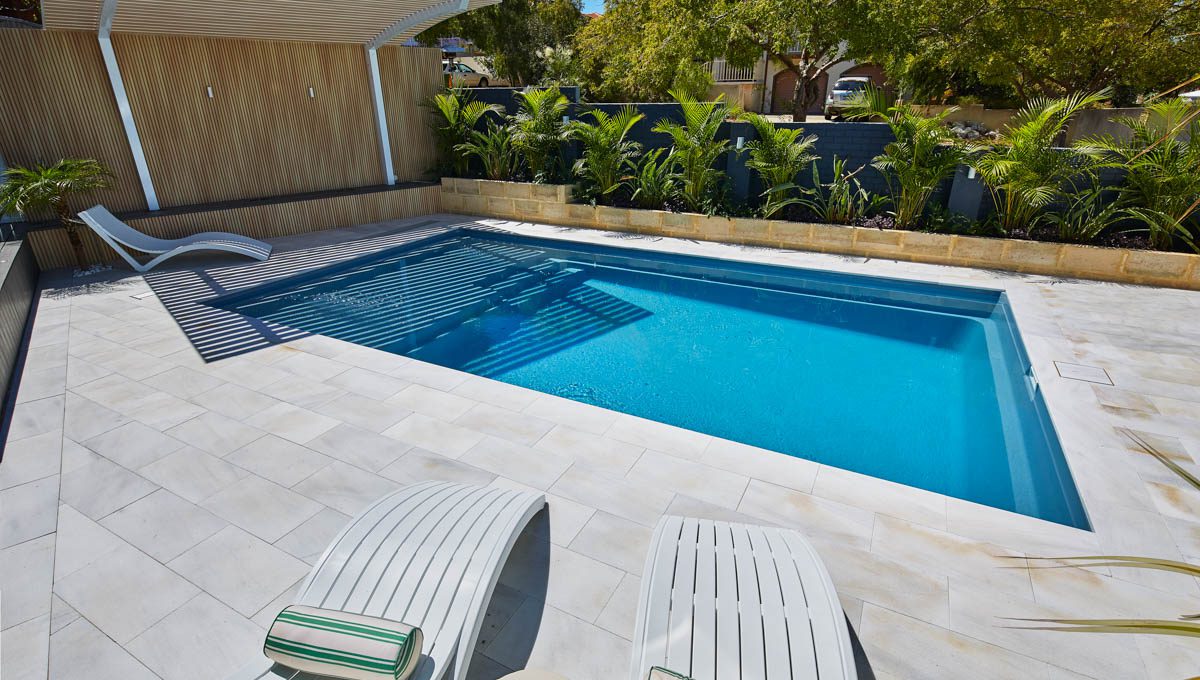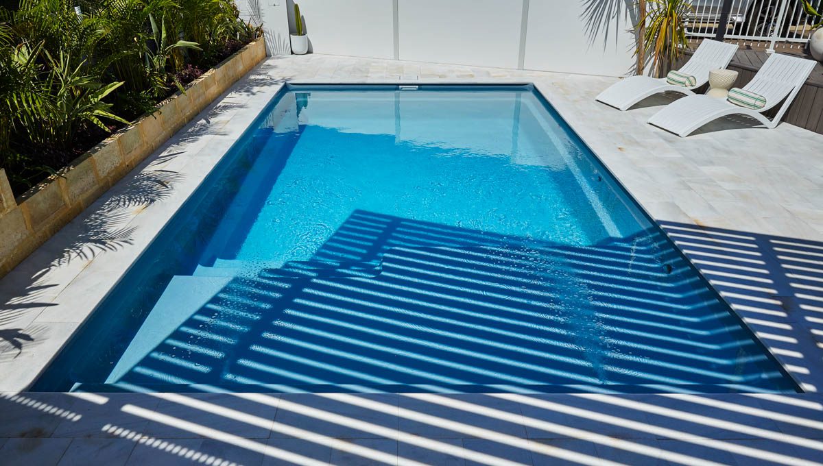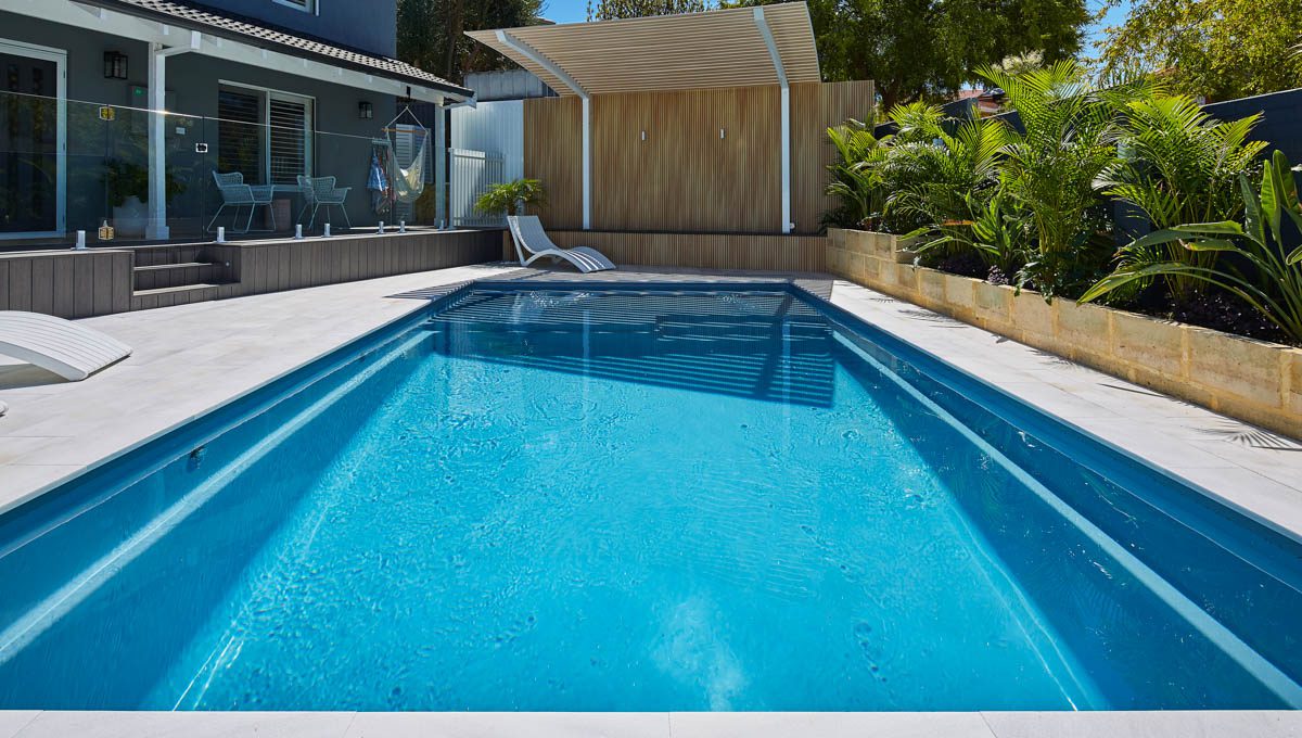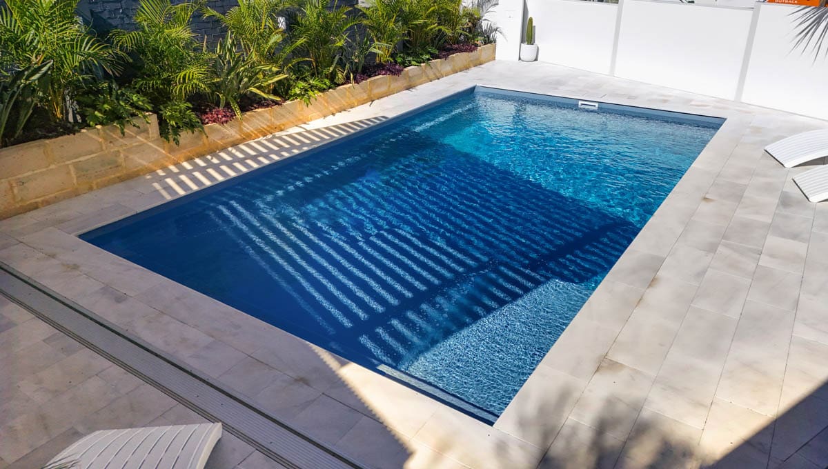 Our Sunseeker pool was recently installed in Kardinya in the popular 7.6m x 4.4m size — a great fit for modern backyards looking for a balance of style and functionality. This particular pool features our elegant Hampton Grey Shimmer colour, which catches the light beautifully and adds a sleek, contemporary finish to the outdoor space.