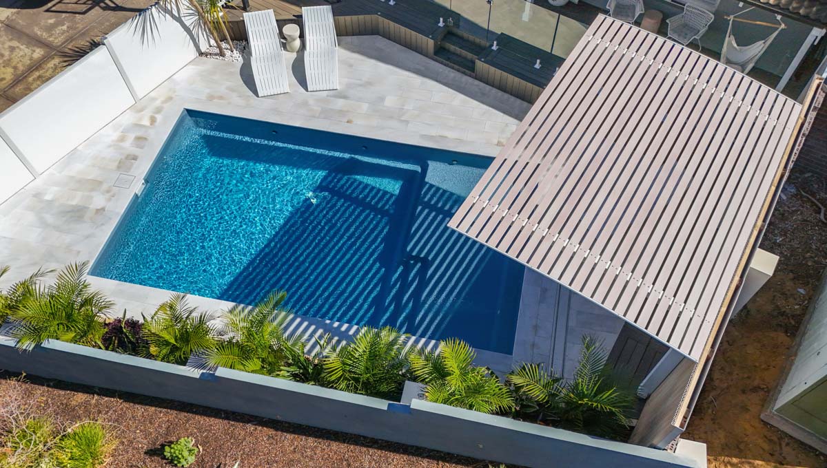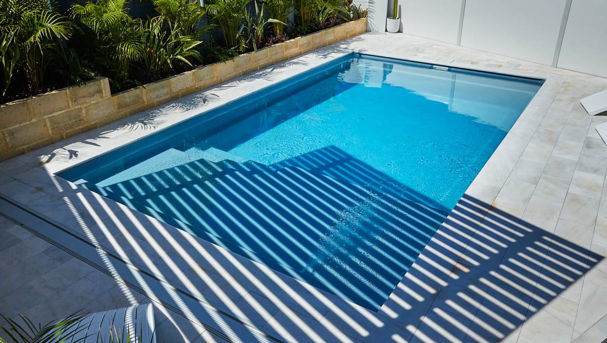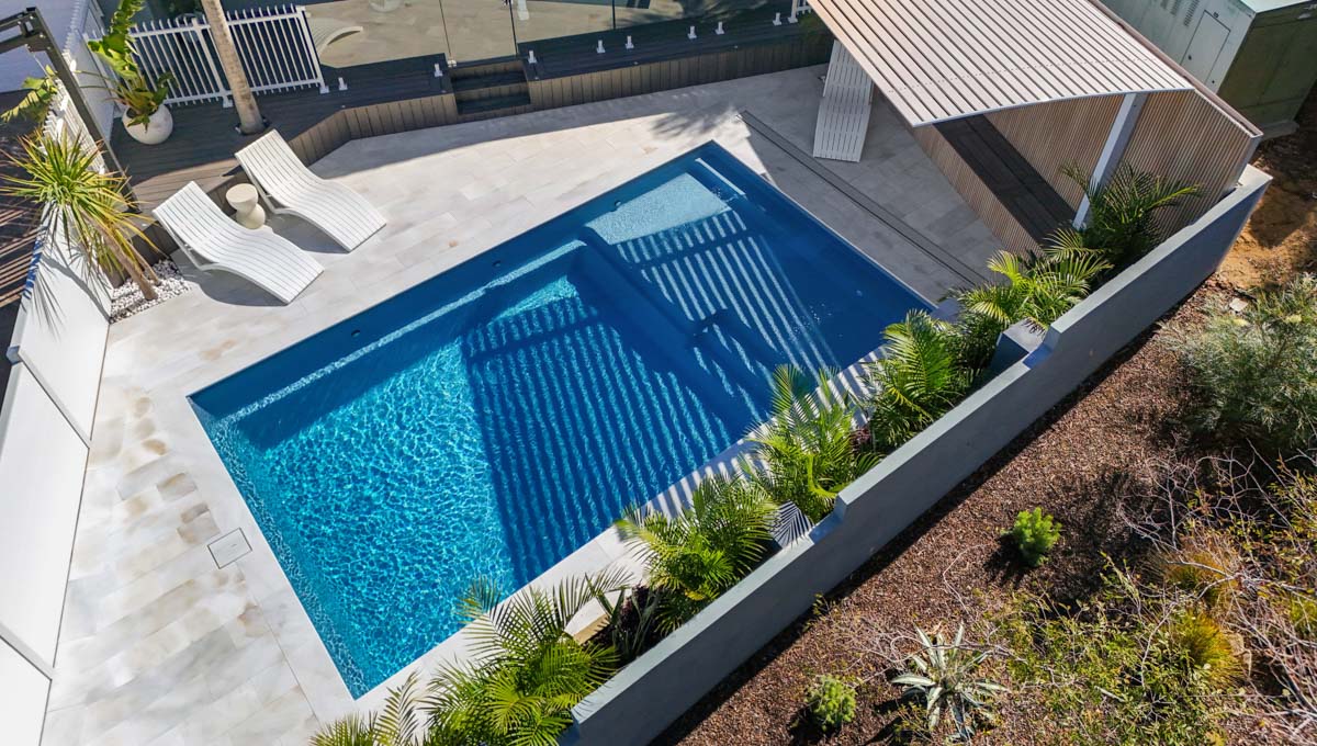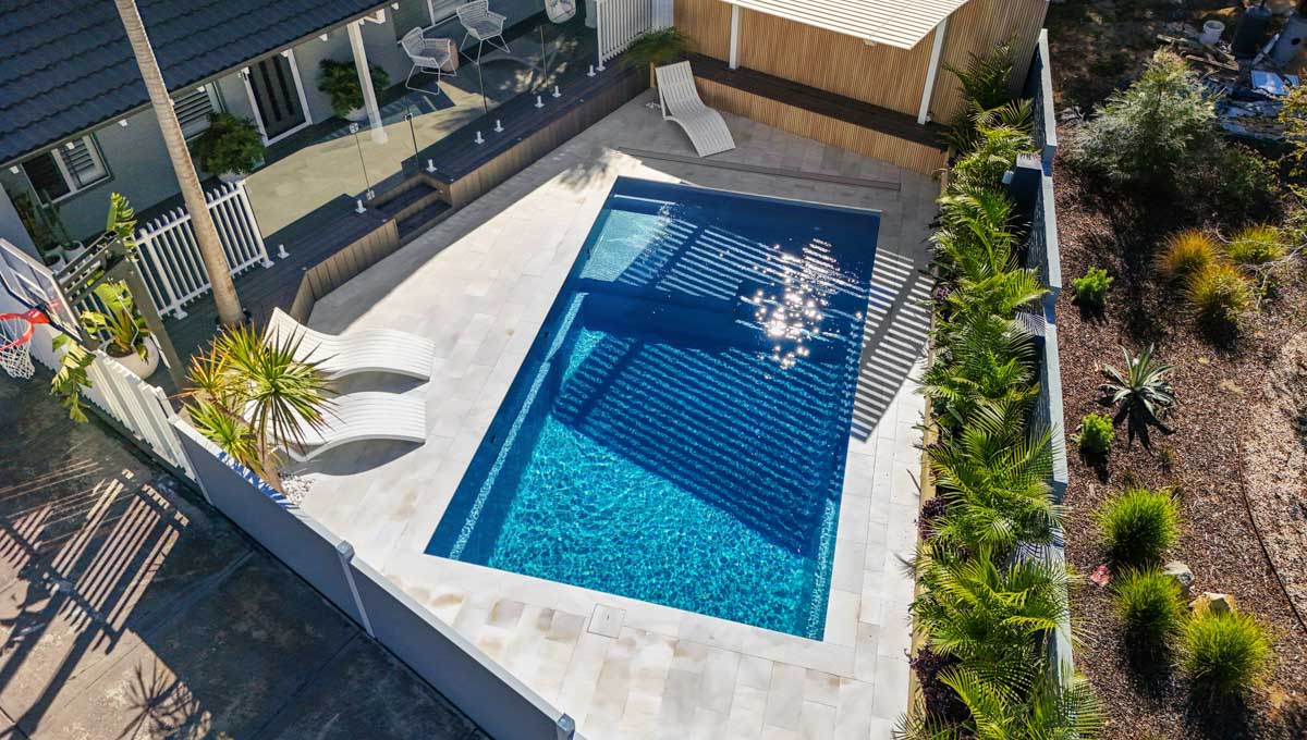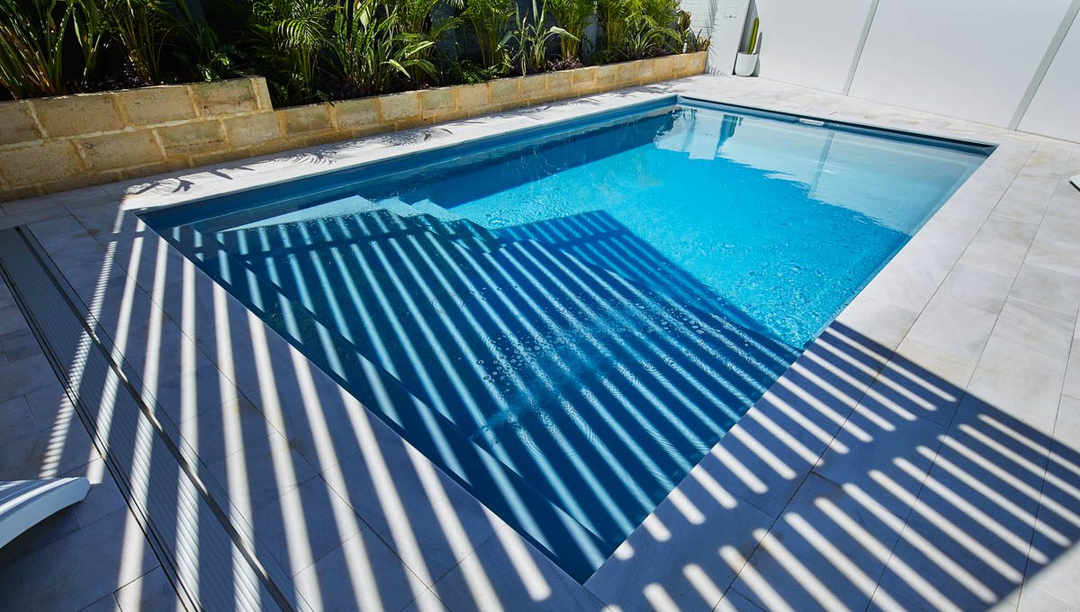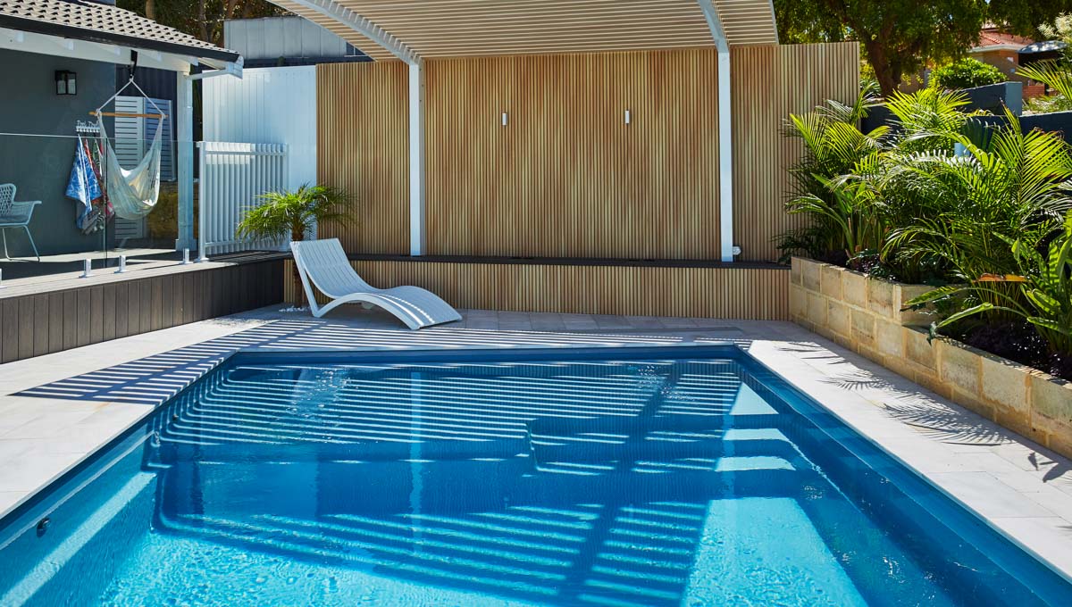 Our Sunseeker pool was recently installed in Kardinya in the popular 7.6m x 4.4m size — a great fit for modern backyards looking for a balance of style and functionality. This particular pool features our elegant Hampton Grey Shimmer colour, which catches the light beautifully and adds a sleek, contemporary finish to the outdoor space.