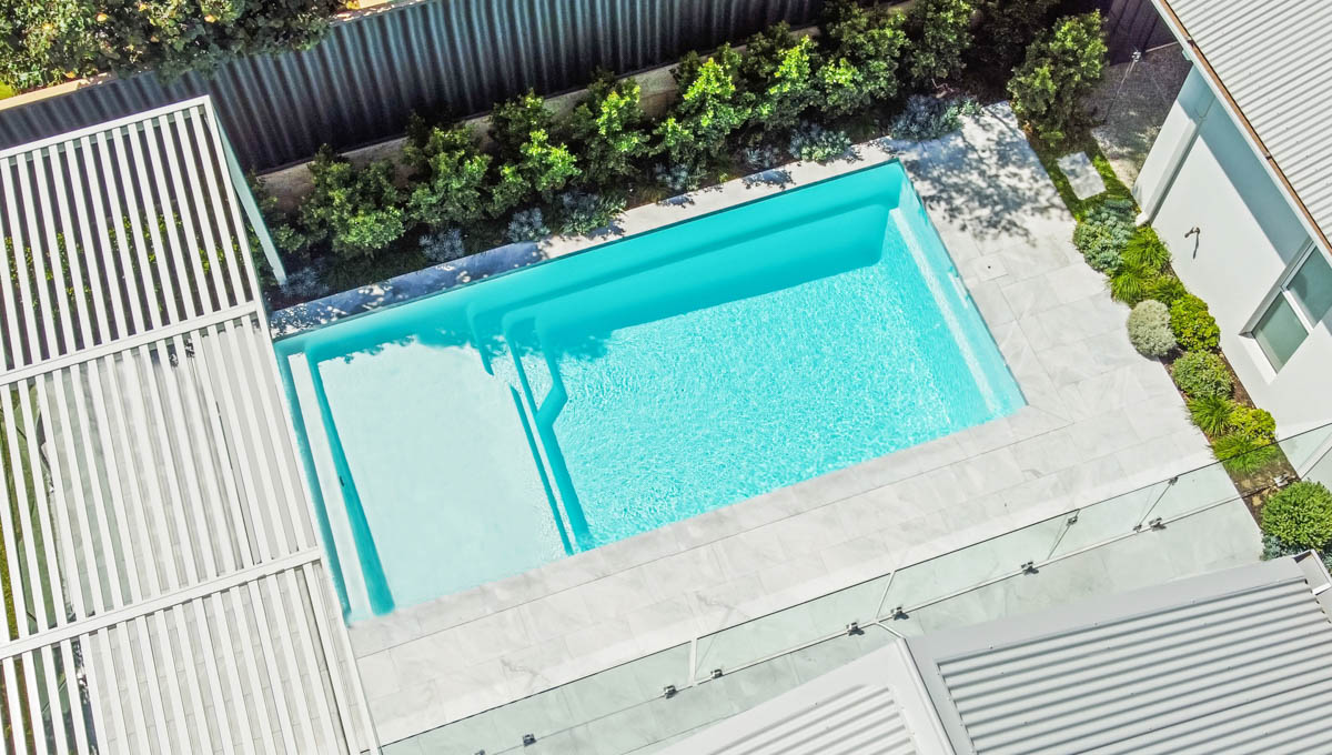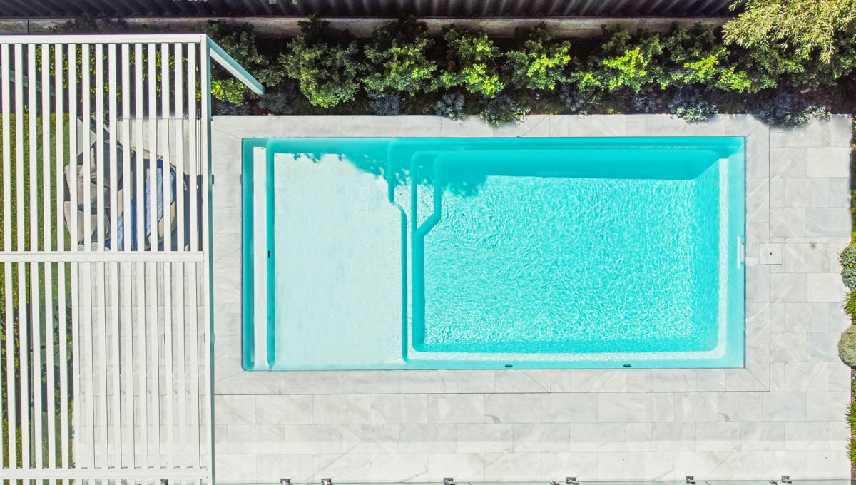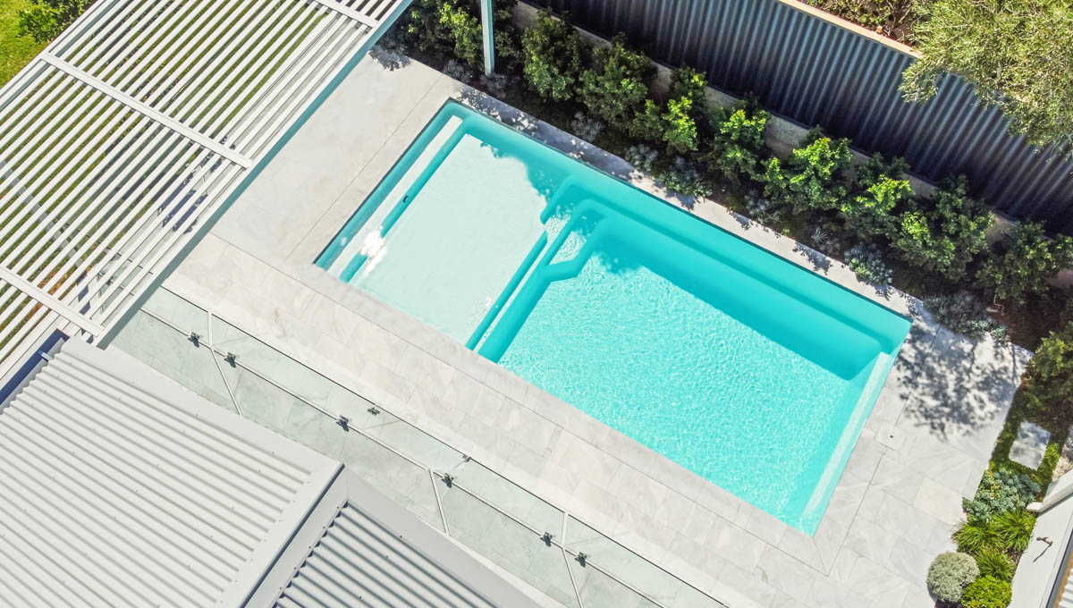 The Sunseeker is one of our more recent designs in our extensive pool range. This pool features our Royal Alpine White Shimmer colour. This simplistic, clean design truly has it all, along with a full-length step for easy access, a massive splash deck for simply lazing around with family and friends or utilise this space as a fun-filled kids play area. With recessed steps, the Sunseeker Slimline Series has an uninterrupted swimming section.