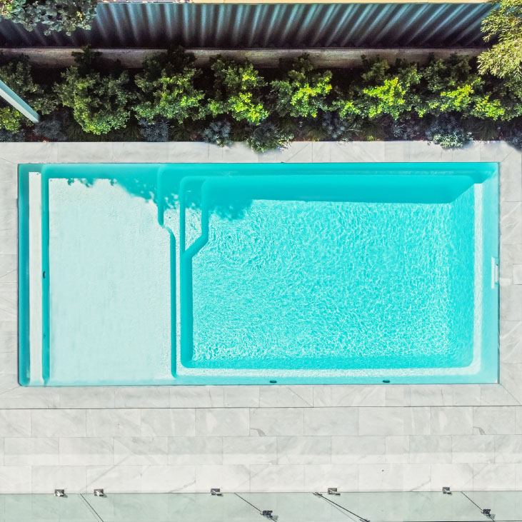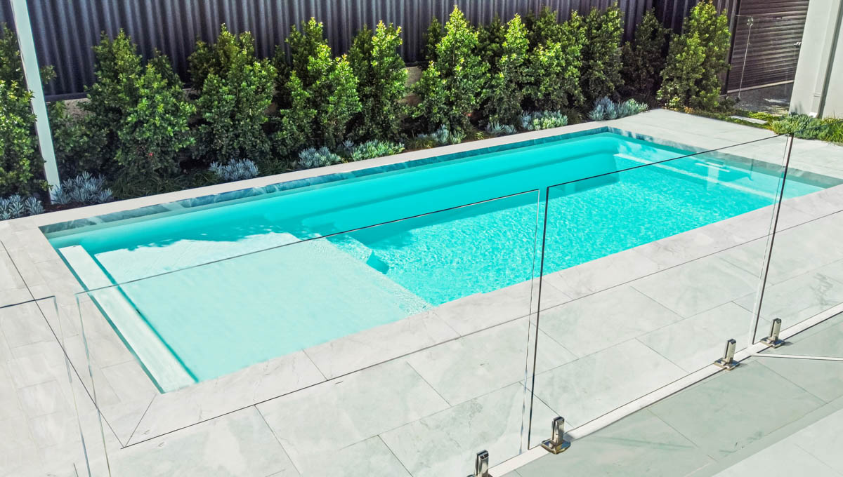 As with all Barrier Reef Pool designs, the Sunseeker Slimline Series incorporates the safety ledge for our junior swimmers, non-slip benches and steps, smooth edges, and our vibrant range of shimmer colours.