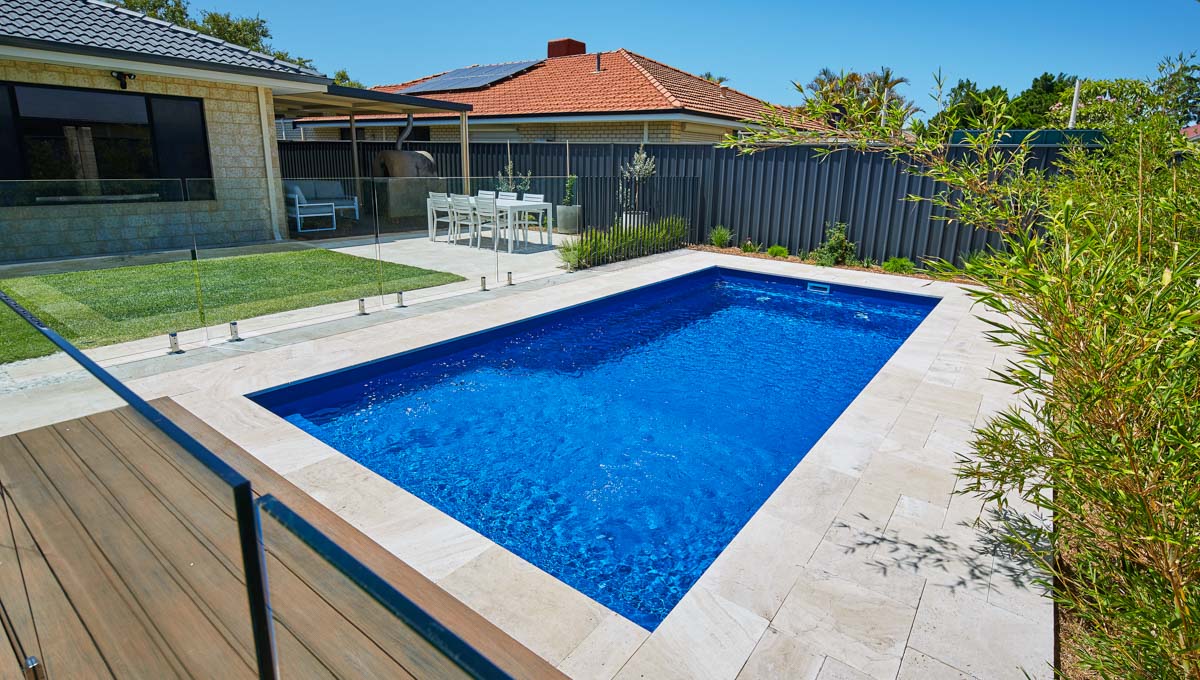 The Sunseeker is a part of Barrier Reef Pools’ extensive pool range. This pool features our Royal Ocean Shimmer colour. This simplistic, clean design truly has it all, along with a full-length step for easy access, a massive splash deck for hanging out around with family and friends or utilising this space as a fun-filled kids play area. With recessed steps, the Sunseeker Series has an uninterrupted swimming section.