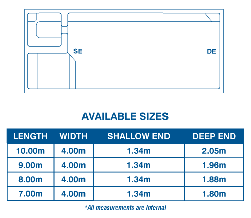 Contemporary square internal corners: Embrace a sleek and modern aesthetic with the inclusion of square internal corners. These sophisticated corners facilitate 90-degree paving, lending an air of refinement to your pool area. Elevate the visual allure of your outdoor space with this stylish design element.