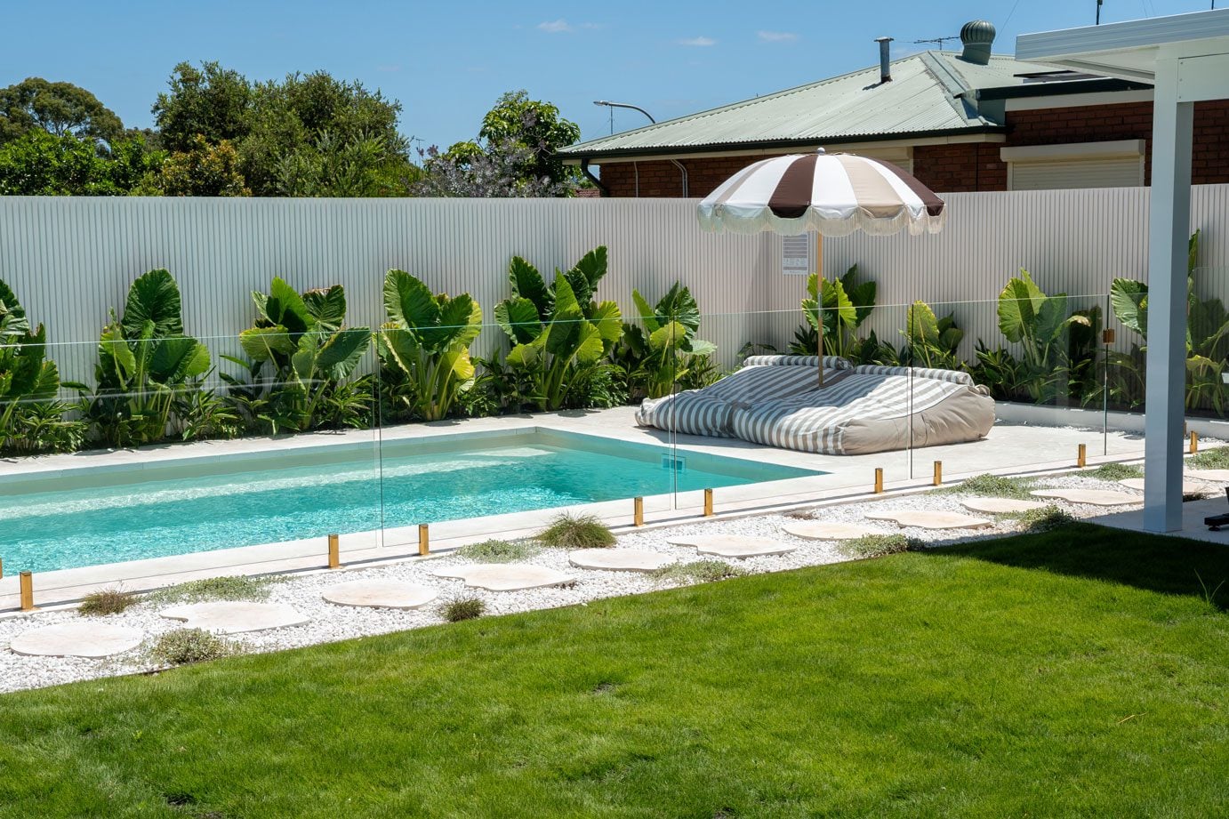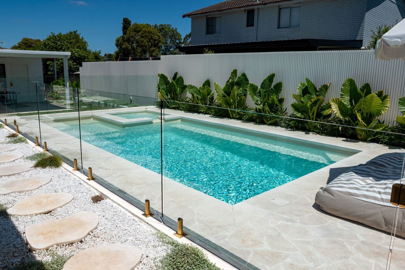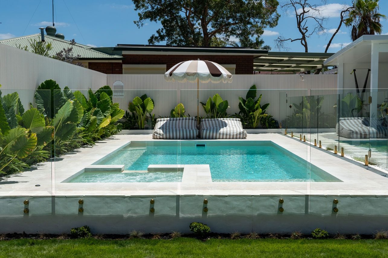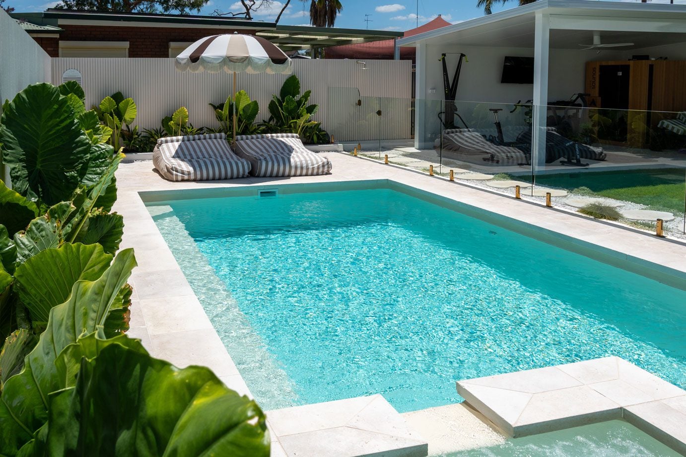 Our Whitehaven 8m x 4m was installed in South Penrith- these homeowners have opted for our Sandy Beach Sparkle colour!