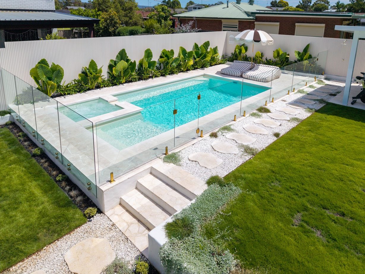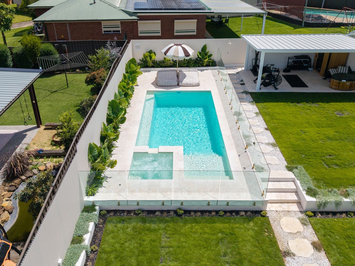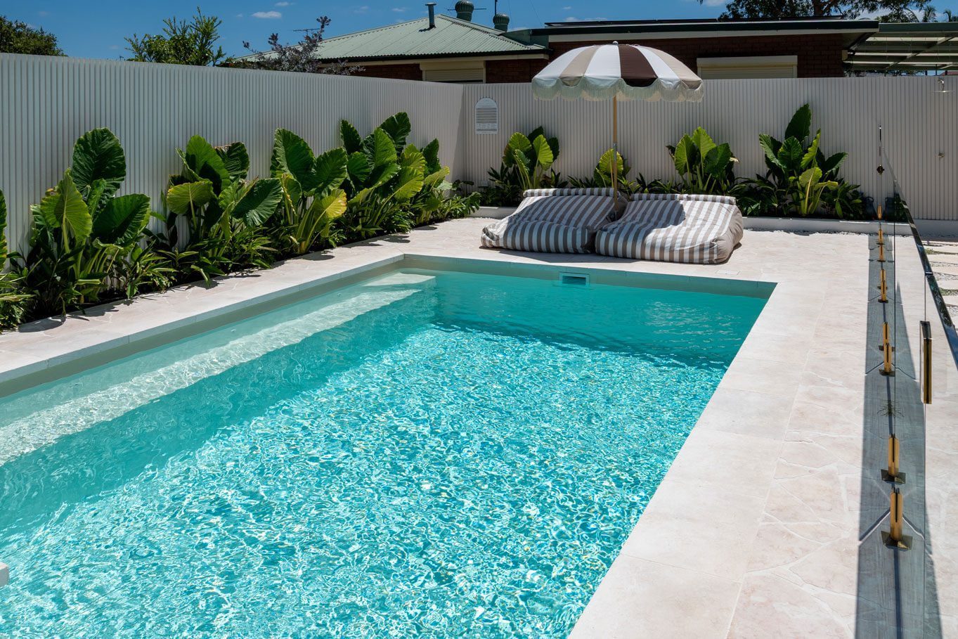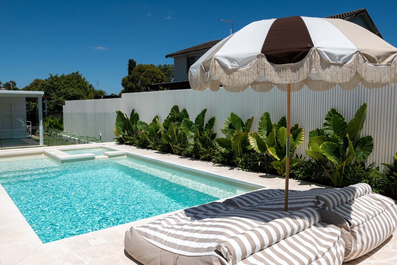 Our Whitehaven 8m x 4m was installed in South Penrith- these homeowners have opted for our Sandy Beach Sparkle colour!